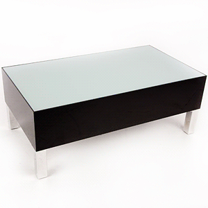 A Colour Changing Coffee Table é feita de acrílico preto com tampo de vidro de segurança laminado e iluminada com LEDs coloridos.
