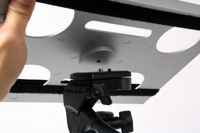 O suporte para notebooks com tripé da Thanko é uma maneira bem curiosa de trabalhar fora do escritório, desde que você não se incomode em ficar em pé, é claro. O suporte é uma placa de alumínio comum que fica presa a um tripé fotográfico, e além do notebook, também serve para partituras e livros, entre outros usos. O suporte também tem tiras de velcro para manter seu notebook seguro e evitar acidentes.